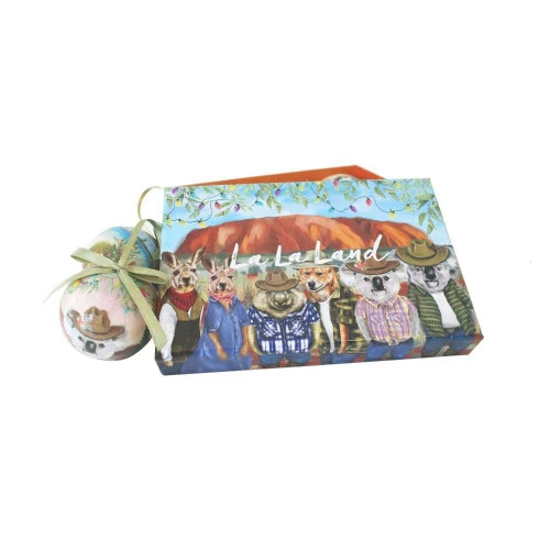 Boxed Christmas Sunny Outback Bauble Size: 10cm Make your tree stand out against the ordinary this year, or give the gift to inspire happiness. La La Land ornaments add a touch of Australian native beauty, nostalgia, tradition or humour to your Christmas.