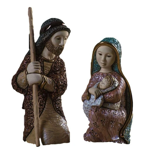 De Rosa Nativity Holy Night Mary & Joseph Size: 11 x 8 x 24cm & 10 x 8 x 19cm Bring the wonder and spirituality of the very first Christmas into your home this year with our nativity set! This set features three beautiful figurines of Joseph, Mary and Baby Jesus, each hand-carved and hand painted with exquisite workmanship and attention to detail. Figurines are created with vibrant platinum and gold enamel glazes that make each piece catch the light and sparkle like freshly fallen snow. Made by specially trained craftsman. Gift boxed, with a certificate of authenticity Released 2019
