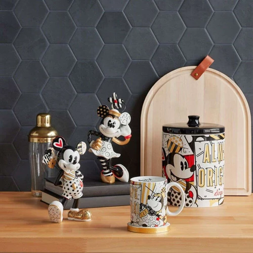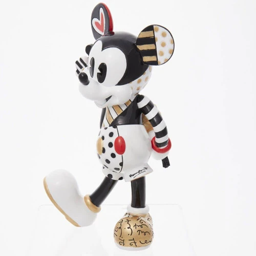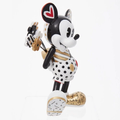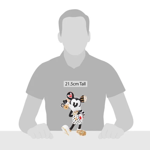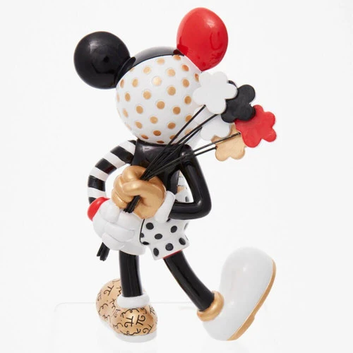 Disney By Brito Mickey Mouse Figurine Size: 20cm This magnificent huge Mickey Mouse figurine designed by Romero Britto has been given the Midas touch. Mickey stands with his hands behind his back, holding a bouquet of flowers and a red heart icon is painted behind his ear to emphasise his lovable character. Fans of Disney and Romero Britto will love this throwback Mickey Mouse design, which features striking contrasts in black, white, red, and shining gold. Presented in a branded gift box Made from stone resin