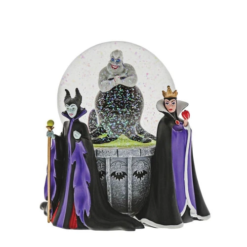 Disney Villains Light Up Waterball Size: 15cm This illuminated water globe features three of Disney’s most delightfully nasty villains. Each of Ursula, the Evil Queen, and Maleficent has been carefully hand painted to look three-dimensional. The entire world is bathed in a glimmering, menacing green light. Lights up water globe with on and off switch Battery operated 3 x AAA included