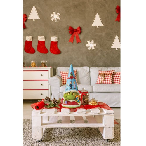 Dr Seuss Grinch Gnome Statue Size: 35.5cm Introduced: 2022 The grinch Disguised in Santa’s coat, he’s eager to steel your Christmas tree this season. With a sneaky grin on his face, he holds a present in one hand and a decoration in the other