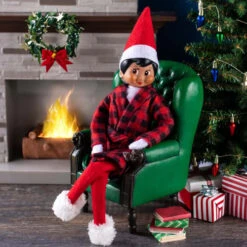 Claus Couture Cozy Robe And Slippers When your Scout Elf needs to get cozy, this lounging set provides the perfect attire for nestling down for a long winter’s nap. Includes: Cozy buffalo plaid robe Fuzzy elf-sized slippers (Elf is not included)
