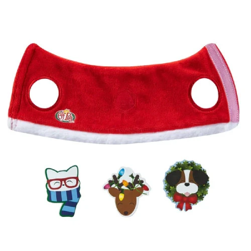 Elf Pets Christmas Sweater A sweater knitted by Mrs. Claus keeps your elf’s pet toasty. To match their Scout Elf pals, these shirts are reversible between green and red. Includes:• Reversible red/green sweater • 3 fun Velcro patches