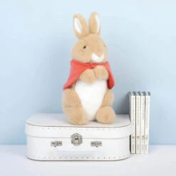 Flopsy Bunny Plush with Pink Cape Size: 25cm Age: 1+ The Classic Flopsy Bunny plush is soft and huggable and makes for a perfect gift for those young and young at heart Beatrix Potter fans! She wears a gorgeous luxe pink cape, embroidered with her name ‘Flopsy’ on the side.