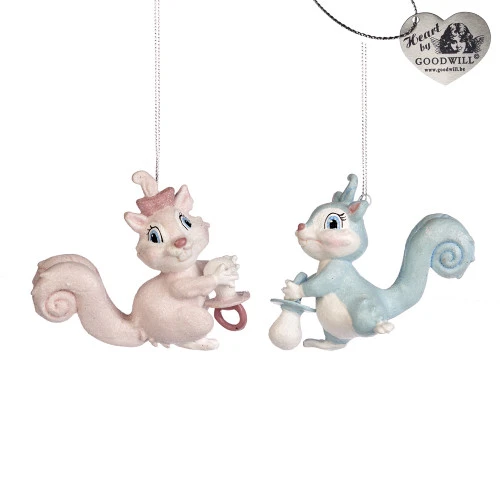 Goodwill Baby First Squirrel Ornament Size: 10cm Celebrating your baby’s first Christmas, this intricately crafted squirrel decoration will add a charming touch to any Christmas tree. This memento will make a perfect family heirloom that can be brought out year after year, passing from generation to generation. Options: Pink or blue Each sold separately Subject to availability