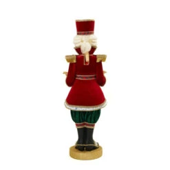 Katherines Nutcracker with Tray Size: 122cm A group of artists laboured around the clock to create this exquisitely detailed Christmas nutcracker with tray figurine. His jacket is a tailored red colour with gold accents. Beneath he wears a frilly collar and cuff and a pair of green knickerbockers with a red check band. He carries a gold tray in his hands. This would be a wonderful addition to your Christmas collection and holiday decor.