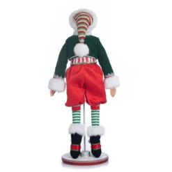 Katherines Pepper The Christmas Elf Size: 66cm The Peppermint palace Elf doll is an excellent way to decorate for the holidays. This charming Christmas doll features a forest green colour combination with red and candy detail is sure to put you in the holiday spirit. Discover the perfect token of appreciation among our handcrafted decorations and demonstrate your excellent taste in a unique way. Our unique character dolls and other handcrafted creations have been a hit with collectors for over 30 years. Katherine’s Collection has everything you need to bring your spooky, magical, or romantic Christmas dreams to life.