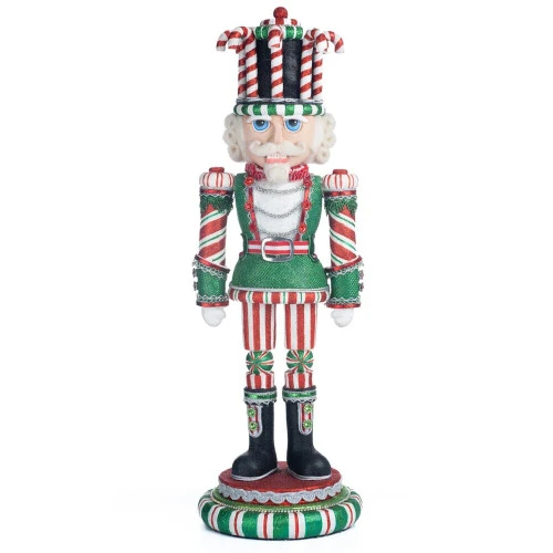 Peppermint Palace Nutcracker Size: 48cm The Peppermint Palace Nutcracker Figurine is a festive addition to any home. This charming nutcracker features a forest green and red finish for a look that’s right at home in a winter wonderland. Peppermint palace is an elegant replacement for traditional Christmas displays for those who have grown weary of them. Bring some new life to the holidays with our vivid green candy cane stripes, statues, figures, and spinning server. For thirty years, our unique character dolls and other handcrafted items have brought joy to collectors throughout the world. Katherine’s Collection can fulfil any spooky, mystical, or romantic wintertime wish.
