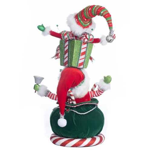Katherines Santa and Elf Gift Stack Size: 48cm This funny Christmas figurine depicts a delightful Elf and Santa encounter. The elf pops out of a gift, as Santa pops out of his Santa sack. Sweet candy-inspired decor would be a terrific addition to your home. For 30 years, our unique character dolls and other handcrafted items have brought joy to collectors throughout the world. Katherine’s Collection can fulfil any spooky, mystical, or romantic wintertime wish.