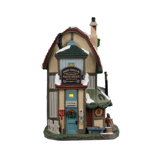 Lemax Fitzroy’s Farrier Size: 18.5cm x 13cm x 11.5cm The farriers at Fitzroy’s can help you figure out what’s wrong with your lame horse or cow. Fitzroy’s has been around for quite some time, so it’s no surprise that many farmers and horse owners have come to rely on their services. Fitzroy’s is centrally placed in town, so walk-ins are always welcome, and they also provide house calls. Whenever a blacksmithing crew is hard at work, you can bet there will be a crowd gathered outside to observe them. Year Released: 2023 Made of: Porcelain Product type: Lighted Buildings Control switch: On/Off switch Electrical: With 1.83m cord (6 feet) or with LED light cord with battery box or with LED light cord with adaptor