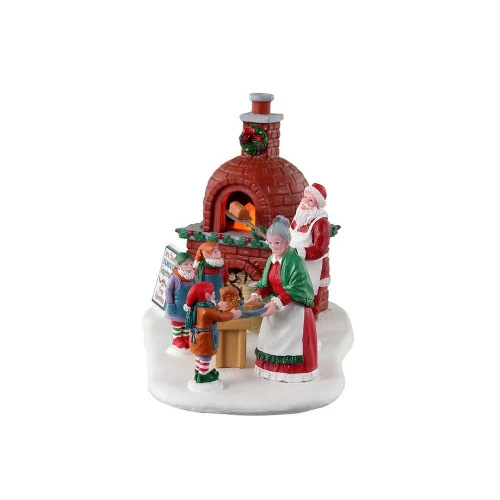 Lemax Mrs Claus Gingerbread Bake You can smell gingerbread baking in the streets a week or two before Christmas. Find Mrs. Claus’s Gingerbread Baking by following your nose. She and Santa build up shop near the town area so that everyone can enjoy this special holiday delight, using a secret formula and an oven built by hand just for gingerbread. Size: 10cm x 16cm x 8.5cmYear Released: 2023Made of: ResinProduct: Table PiecesControl switch: On/Off switchBatteries: Uses three AA size 1.5V batteries – batteries not includedElectrical: A/C adaptable by using a Lemax Power Adaptor. Adaptor not included.
