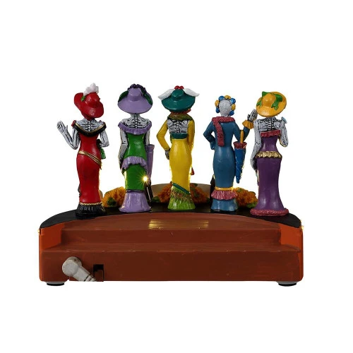 Lemax Spookytown Catarinas Fashion Show Size: 9.8cm x 13.7cm x 8.9cm The celebrations in Spooky Town do not stop until Halloween has come and gone. Consider the annual Dia de los Muertos fashion show. The contestants put on their scariest threads for a public vote on who has the most chilling style. This runway show is so intricately designed and well-executed that it could only come from another planet. The stage lights illuminate the contestants, who smile and wave to the audience despite dressing in some of the most spectacularly terrible outfits ever. Year Released: 2023 Made of: Resin Control switch: On/Off switch Batteries: Uses three AA size 1.5V batteries – batteries not included Electrical: A/C adaptable by using a Lemax Power Adaptor. Adaptor not included.