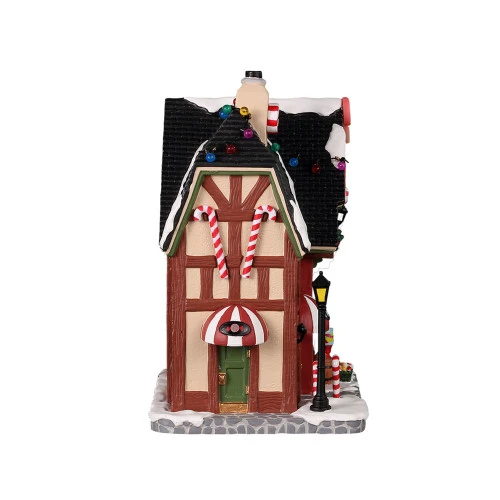 Lemax Sugar Plum’s Penny Candy The Sugar Plum’s Penny Candy store is the number one place for the local kids in Caddington Village. It’s pretty popular with the adults with a sweet tooth too. Take a peek through the lit window at all of the delicious treats but beware, it’s sure to get your mouth watering! Decorated with fitting candy canes and a light dusting of snow on the roof, this is a perfect snapshot of Christmas in small-town America. Make sure to brush your teeth! Size: 20cm x 16.3cm x 13cmYear Released: 2022Made of: PorcelainProduct Type: Lighted BuildingControl Switch: On/OffElectrical: with 1.83m cord or with LED light cord with battery box or with LED light cord with adaptor (not included)