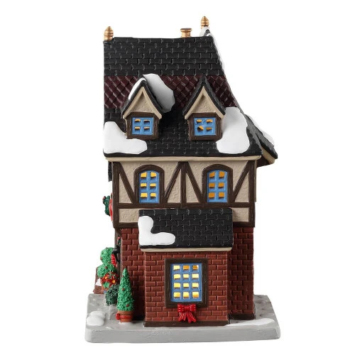 Lemax The Burghers House Size: 19cm x 17.5cm x 12cm It is customary to begin decorating with the Burgher’s House, located near the town square. The owners are throwing a party tonight, so they’ve decorated the house with lights and hung a holiday wreath on the door. This elegant Tudor house has been decorated for the holidays to the delight of the other citizens of Christmas Village. Year Released: 2023 Made of: Porcelain Product type: Lighted Buildings Control switch: On/Off switch Electrical: With 1.83m cord (6 feet) or with LED light cord with battery box or with LED light cord with adaptor