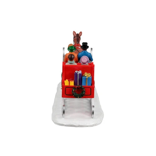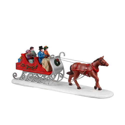 Lemax Victorian Sleigh When snow is covering the ground in Caddington Village, there is no better way to travel than on a grand Victorian Sleigh! This family of four look warm and contented under their blankets, and the horse leading the way looks happy to be of service! With a traditional wreath taking pride of place up front and some wrapped gifts in the back, there is no doubt that this is a family Christmas trip to deliver some special packages. Size: 8.1cm x 23.5cm x 6.3cmYear Released: 2022Made of: ResinProduct Type: Table Piece