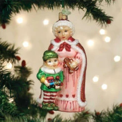 Mrs Claus With Elf Glass Ornament Size: 13cm North Pole locals are known for being warm and welcoming. The Claus family is at the lead. In terms of spreading holiday cheer, Mrs. Claus is always at the front of the line. Mrs. Claus is frequently found in the kitchen whipping up some gingerbread, assisting her elf pals in the toy factory, and belting out carols.