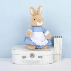 Mrs Rabbit Plush with Embroidered Apron Size: 25cm Age: 1+ Inspired by Beatrix Potter’s classic tale Peter Rabbit, the Classic Mrs Rabbit plush is soft and huggable and makes for a perfect gift for those young and young at heart for Beatrix Potter fans! Dressed in her favourite blue dress and contrast white frill apron