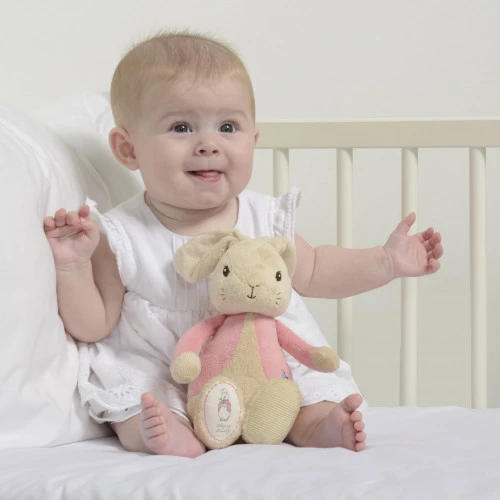 My First Flopsy Size: 26cm Age: Birth+ Baby Soft Plush Flopsy Bunny featuring embroidered butterfly and Flopsy Bunny image on her foot. Great for a baby shower gift, New born, Baby’s first Christmas or simply spoil your little one