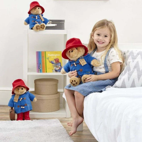 Paddington Bear Sitting Soft Toy Size: 30cm This classic, sitting Paddington Bear is as at home in the playroom as he is on the shelf of a Paddington fan. This adorable stuffed features Paddington Bear in his signature blue duffel coat with tartan lining and authentic toggles, as well as his worn red hat and a suedette tag that reads “Please look after this bear – thank you.” The toy is expertly crafted down to the last detail, which includes a charming gift tag with the recognisable artwork of Peggy Fortnum. Perfect combination of a soft toy and collectable character in one Made from soft plush materials Surface washable Suitable from birth