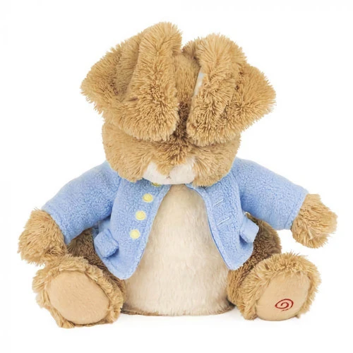 Peter Rabbit Peek a Ears Animated Size: 30cm Age: 1+ Beatrix Potter’s beloved character, Peter Rabbit, is celebrating his 120th anniversary! Celebrate with a special animated Peek-a-Ears Peter Rabbit, who’s ready to play a game of peek-a-boo! This 30cm classically designed animated Peter Rabbit features his well known blue jacket and special moveable ears that activate at the push of a button on his left foot. Peter hides behind his ears before moving back up to delight children with an interactive game of peek-a-boo. During play, Peter speaks phrases with an adorable British accent. Peter is surface-washable for easy cleaning Requires 3 x AA batteries (included).