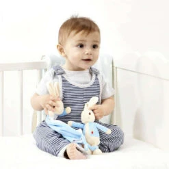 Peter Rabbit Rattle And Comfort Blanket Gift Set Size: 24cm An ideal gift for a new baby, this soft to the touch Peter Rabbit Rattle and Comfort Blanket is a charming addition to any nursery.