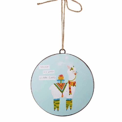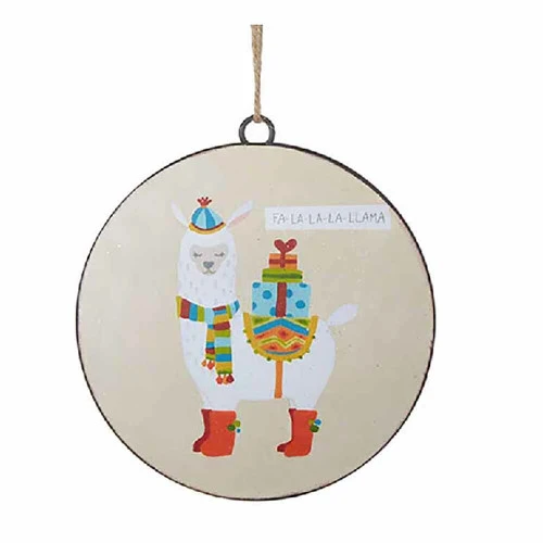 RAZ Llama Disk Hanging Ornament Size: 15cm These gorgeous illustrations of Llama’s on hanging disks are fun and colourful. They would look amazing on your Christmas tree this season. Designed. by Artist June Erica Vess. Made of Iron Design: Blue | Beige Each sold separately. Ensure to select preferred at checkout. Subject to availability