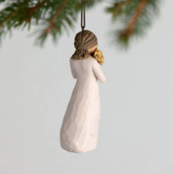 Willow Tree Warm Embrace Ornament Size: 11cm “Surrounded by the warmth of family and friends” Figure in cream dress, holding large bouquet of yellow sunflowers up to face. A gift to celebrate friendships, or for those who love flowers! “Warm Embrace is about what fills our senses in the summer – the feel of sunshine on your skin, the smell of freshly mown grass, the sound of insects, the taste of home-grown tomatoes – all that comes with summer. A warm embrace by family and friends can somehow, magically, provide these same sensations… no matter what time of year.” – Susan Lordi Hand-painted resin ornament. Brown elastic cord for hanging. Dust with soft cloth or soft brush. Avoid water or cleaning solvents.