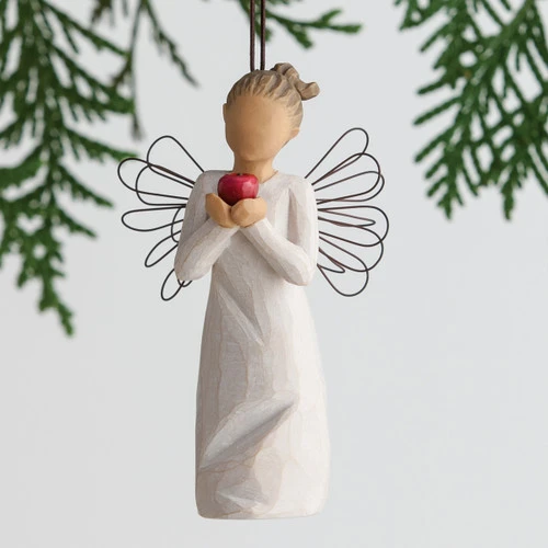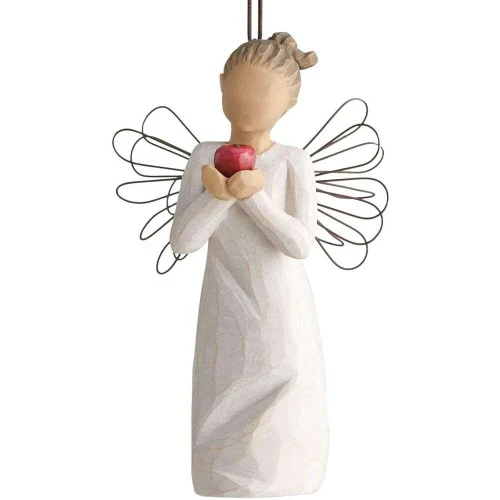 Willow Tree You’re the Best! Ornament Size: 13cm “Thank you for making a difference” This crafted ornament is all about the apple. “I wanted it to symbolise many things… to stand out, be large, delicious, shiny. Obviously, it’s a symbol for teacher appreciation — but the apple is also just a beautiful fruit! A metaphor for good health, for wisdom, for someone chosen for something big… for a special person who always gives the best of her or himself, and makes a difference in the lives of others. I like that this piece is so open.” – Susan Lordi Hand-painted resin ornament with wire wings. Brown elastic cord for hanging. Dust with soft cloth or soft brush. Avoid water or cleaning solvents.
